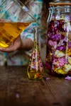 El resultado es un oleado que huele a calma y acaricia como un pétalo: una manera delicada de conservar la belleza efímera de la rosa y convertirla en cuidado, obteniendo un extracto vegetal con un color naranja intenso característico y un aroma floral debido a los principios activos liposolubles que la rosa ha traspasado al aceite.